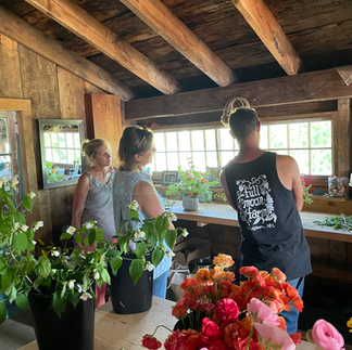 We both agree that the most fun we have on our farm is hosting Floral Design Workshops in our renovated barn studio. We've made so many new friends in the course of teaching people about working with flowers! Our workshops are appropriate for all levels, from experienced designers excited to experiment with local blooms, to newcomers who want to learn the basics of cutting, caring for and designing flowers.
